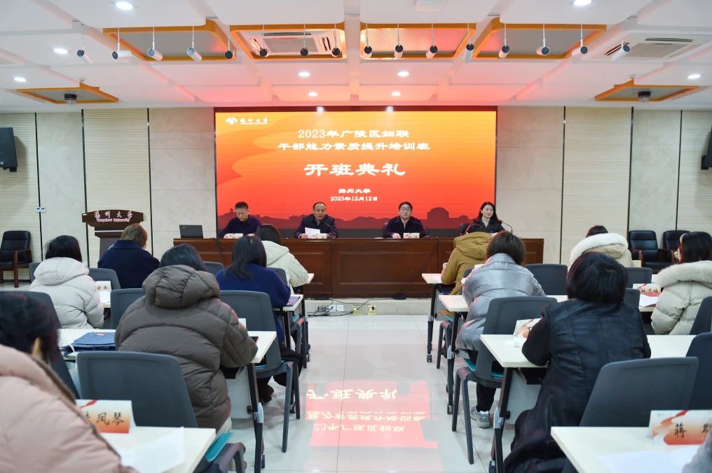 为进一步推动广陵区妇联干部队伍能力作风提升,增强服务广陵高质量发展的能力和水平,12月12日上午,广陵区妇联干部能力素质提升培训班在扬州大学顺利开班,扬州大学党委常委、组织部部长孙鹏出席开班仪式并作欢迎致辞,区委常委、组织部部长杨勇出席开班仪式并作动员讲话。扬州大学继续教育学院、管理培训学院院长周斌出席开班仪式。区妇联党组书记、主席孙艳主持开班仪式。全区妇联系统干部共40余人参加培训。