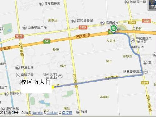 沪陕高速(G40)扬州南出口下 – 右拐(往南)沿扬子江路方向 - 至华阳西路右拐(往南) - 至扬州大学扬子津校区南门(华阳西路196号)