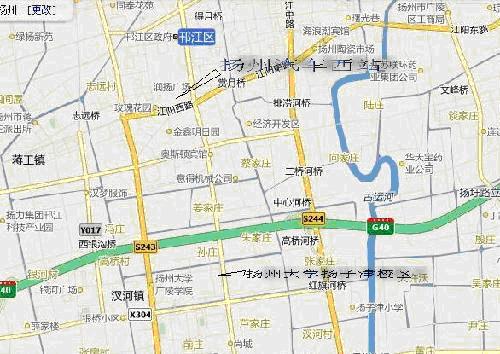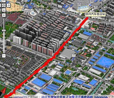 注:扬州汽车客运站就是扬州汽车西站。红线位置为邗江中路。