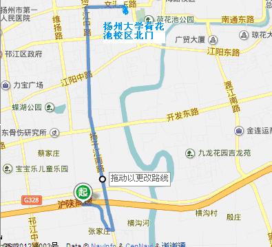 沪陕高速(G40)扬州南出口下 –右拐往北,沿扬子江路 – 至文汇东路- 右拐往东约300米,至扬州大学荷花池校区北门。