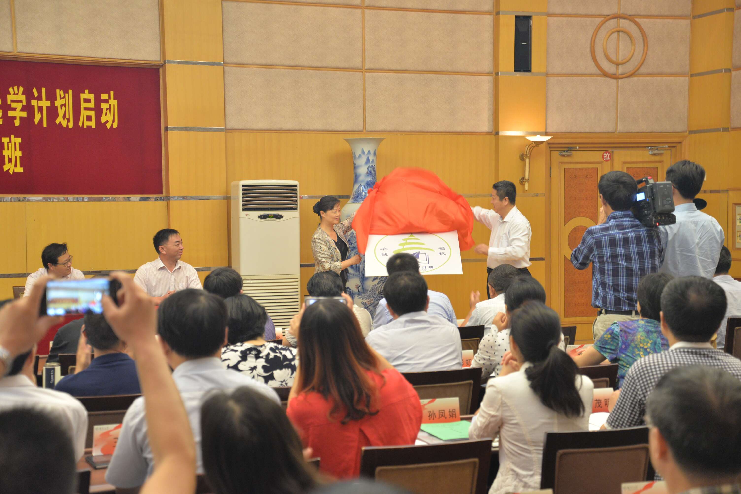 9月14日下午,由我校继续教育学院承办的扬州市“领导干部专业化能力提升高校选学计划”(简称:“名城•名校”干部选学计划)在学校荷花池校区教学主楼多功能厅举行了启动仪式,第一期经济发展专题研讨班正式开班。我校党委常委、副校长陈国宏和扬州市委常委、组织部长张宝娟共同为“名城·名校”干部选学计划标识揭牌并分别讲话和致辞。