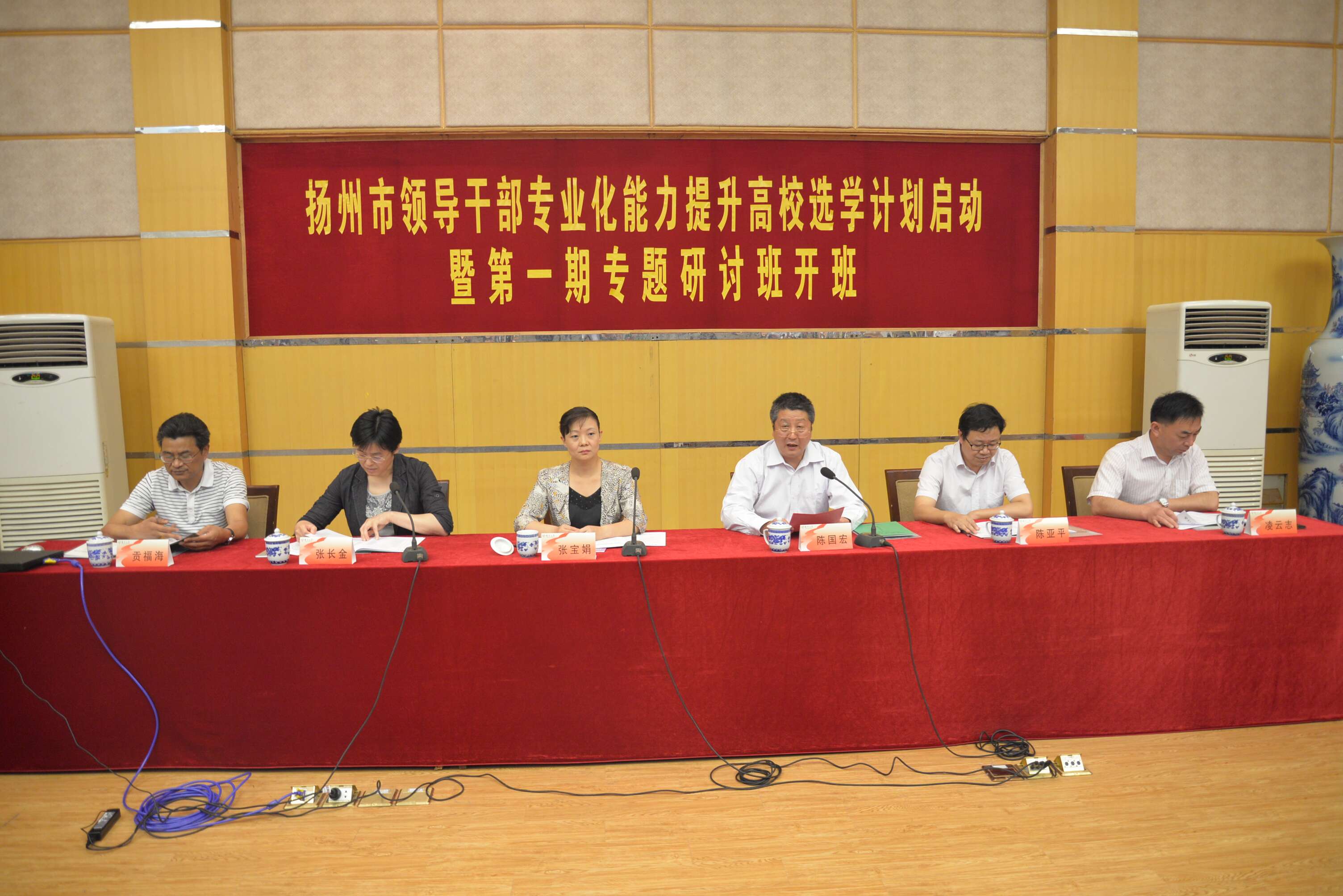 扬州市各功能区、市级机关相关部门100多名副处职、正科职干部参加了开班仪式和学习培训。我校校长办公室、组织部、继续教育学院、商学院等单位负责同志出席了启动仪式。