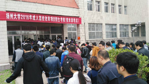 10月15日,扬州大学2016年成人高校面向艰苦行业和校企合作改革项目招生考核工作顺利完成。本轮招生考核共设有校本部、常州、江都、盐城、南京等5个考点,有来自省内1331名考生参加了18个“专升本”专业的笔试、面试。