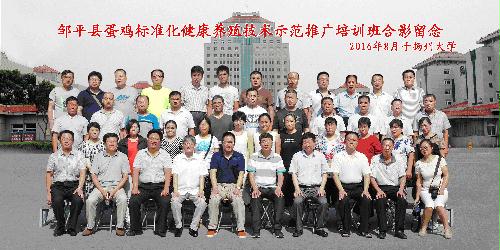 受邹平县畜牧兽医局委托,我校继续教育学院和动物科学与技术学院承办的为期5天(2016年8月14日开始至8月18日)邹平县蛋鸡标准化健康养殖技术示范推广培训班顺利结业。各位专家围绕不同阶段蛋鸡饲料的配制与饲喂技术、标准化饲养管理技术、鸡舍标准化建设与环境控制技术、鸡场疫病科学防控技术、突发事件处理与危机应对能力、国学智慧等专题进行讲解研讨。来自山东邹平县40名畜牧兽医人员参加学习并顺利结业。