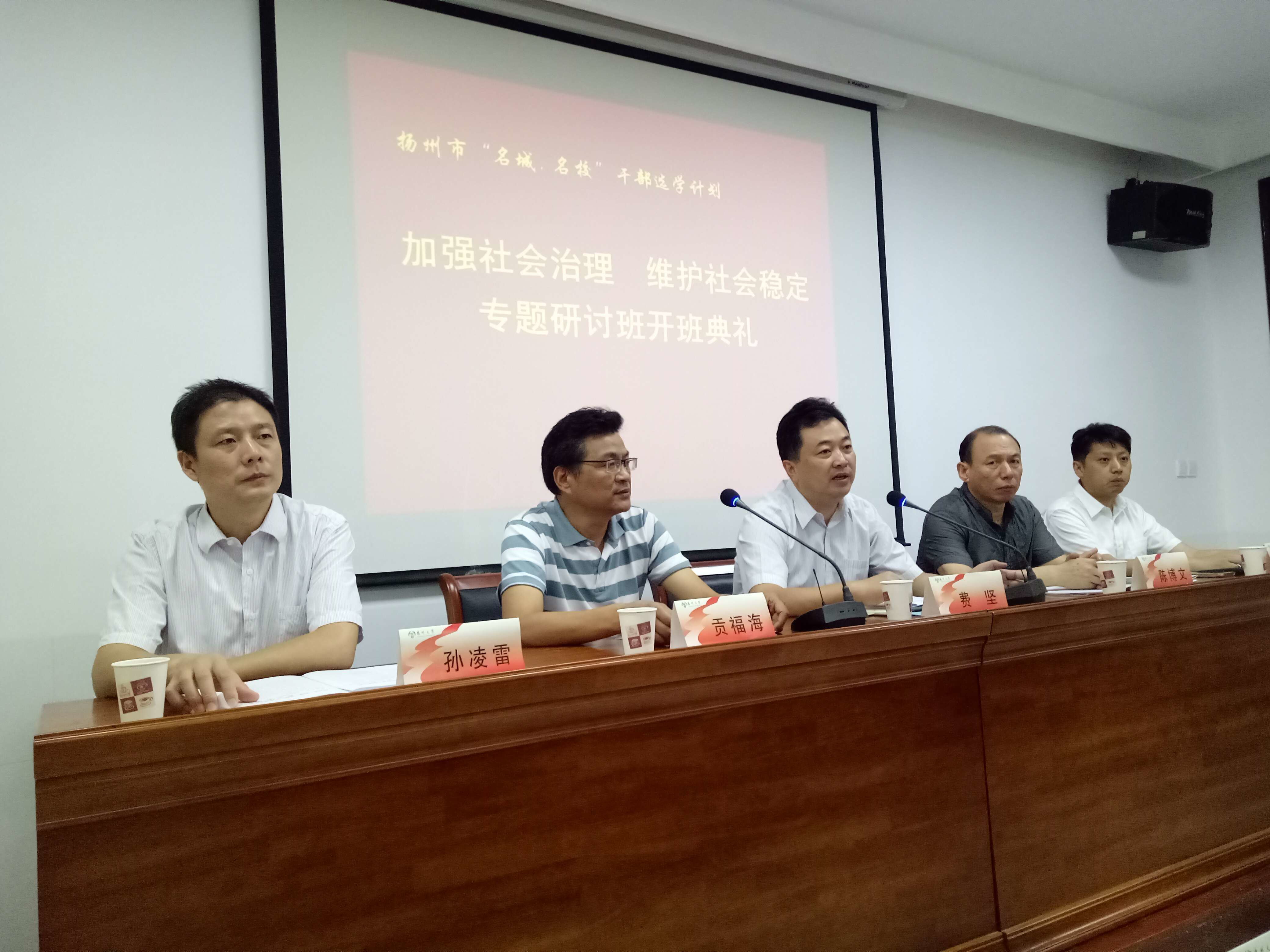 本次专题研讨班由扬州市委组织部、扬州市委政法委、扬州大学继续教育学院主办,扬州大学社会发展学院承办。各相关单位负责同志以及扬州市政法系统学员60余人参加开学典礼。