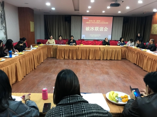2018年11月9日晚,美术与设计学院举办“国培计划(2018)安徽省乡村村小教师访名校”培训班教学沙龙暨破冰联谊活动。