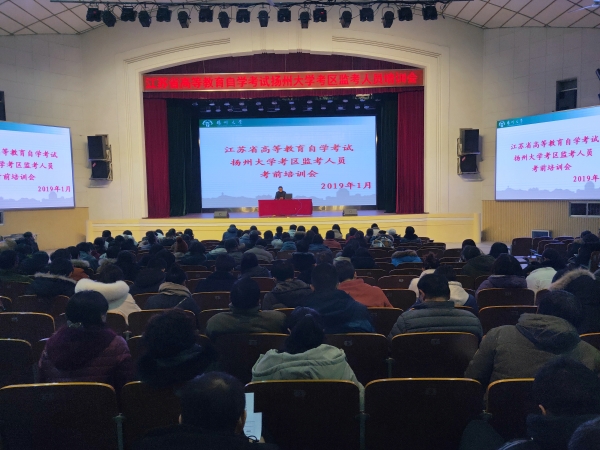 1月2日下午,我校在文汇路校区大礼堂举办了“江苏省高等教育自学考试扬州大学考区监考人员考前培训会”,会上传达了江苏省教育考试院对本次考试的工作与纪律要求。我校监察处负责人、继续教育处负责人出席会议并就考试纪律、监考考务、安全保卫等工作提出了具体工作要求,对监考和考务工作程序进行了系统的培训,要求全体参与考试工作的人员必须本着对考生负责、对考点负责、对学校负责的精神,明确工作职责、严格考试流程、严肃考风考纪,确保我校各考区考试工作的顺利进行。来自我校500多名监考、巡视和考务工作人参加了本次培训活动。