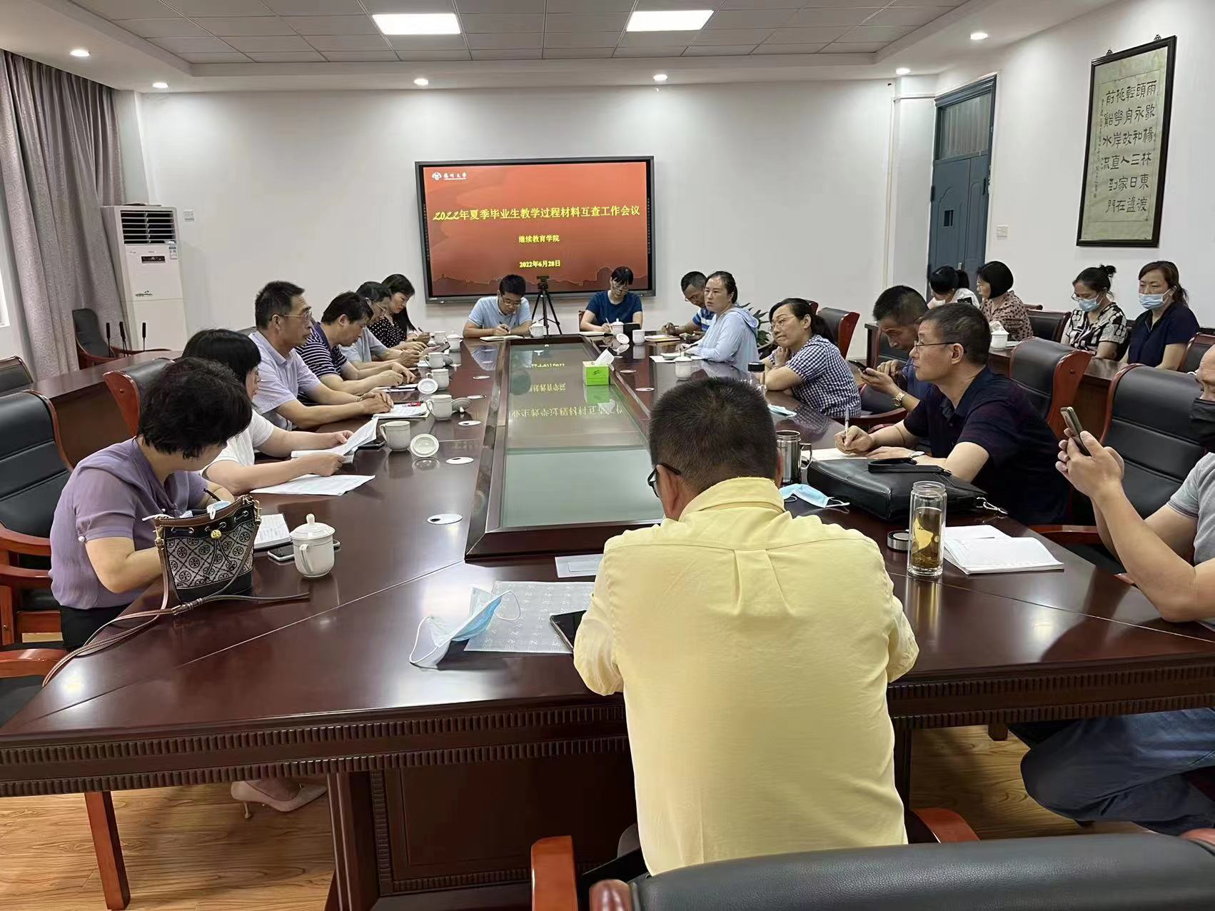 近日,继续教育处(学院)组织学院开展成人高等学历教育2022年夏季毕业生教学过程材料互查活动,继续教育处(学院)段海副处长(副院长)主持了本次活动。